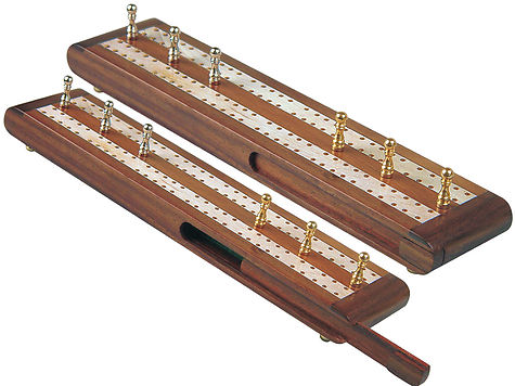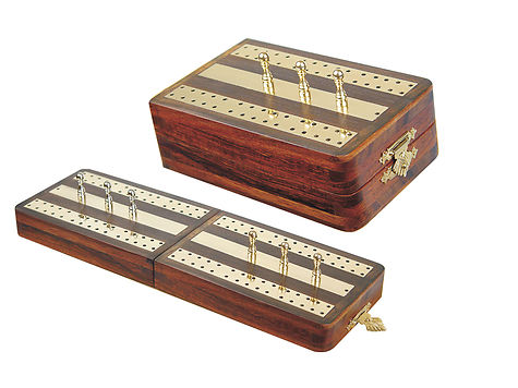 One can't find such gorgeous handmade cribbage board from any other source as this has been developed by our designing and research section with immense dedication. This kind of unique cribbage board mounted on 4 brass pedestals along with 6 metal pegs is being offered for the first time and is hardly available elsewhere.