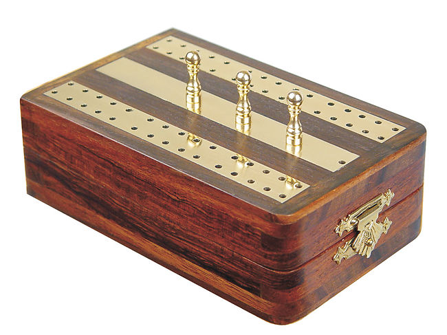 One can't find such gorgeous handmade cribbage board from any other source as this has been developed by our designing and research section with immense dedication. This kind of unique cribbage board with 6 metal pegs is being offered for the first time and is hardly available elsewhere.