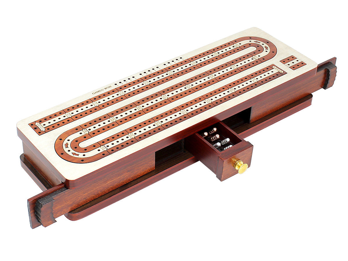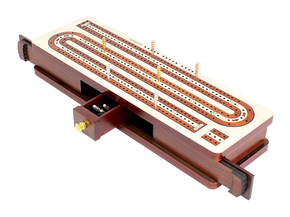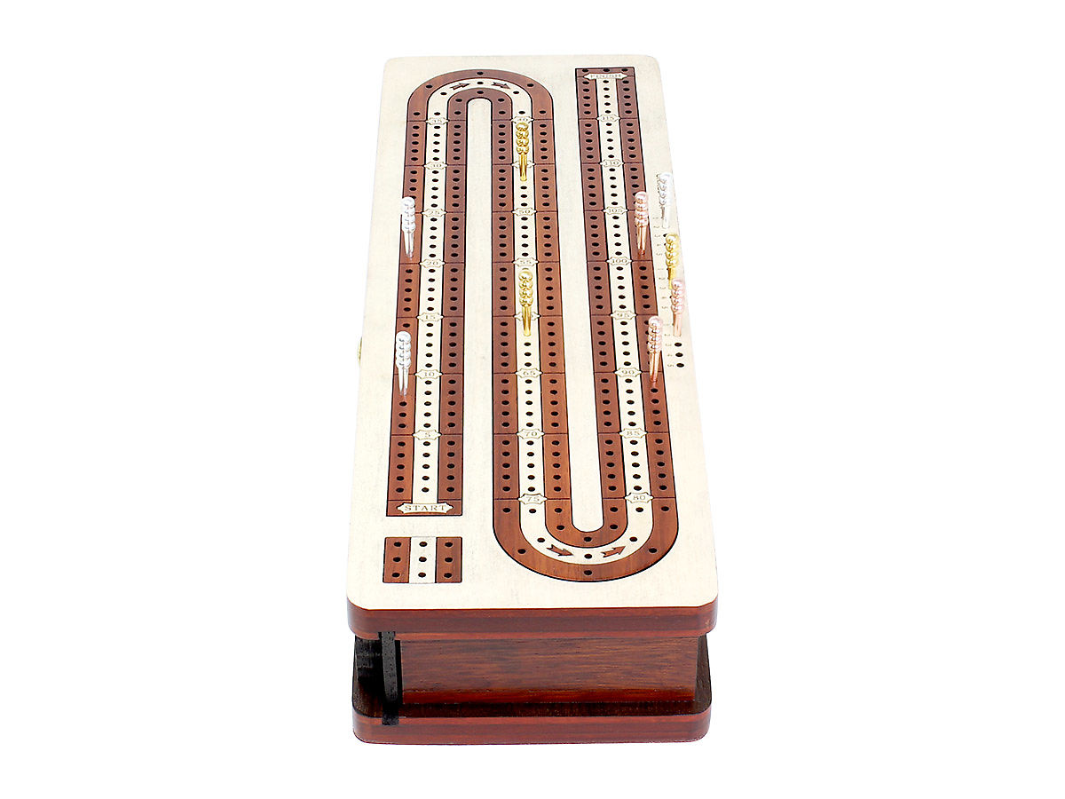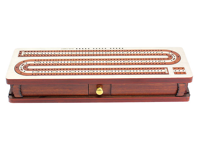 House of Cribbage presents 3 tracks (120 Points) continuous Cribbage Board made for up to 3 players. The board/Box measures 12.5in x 4in x 2in.