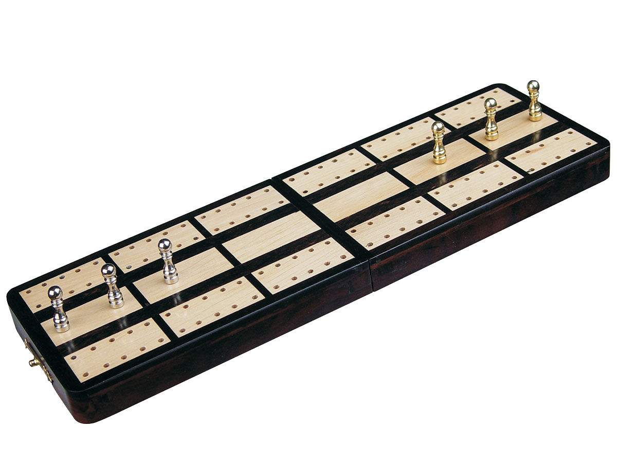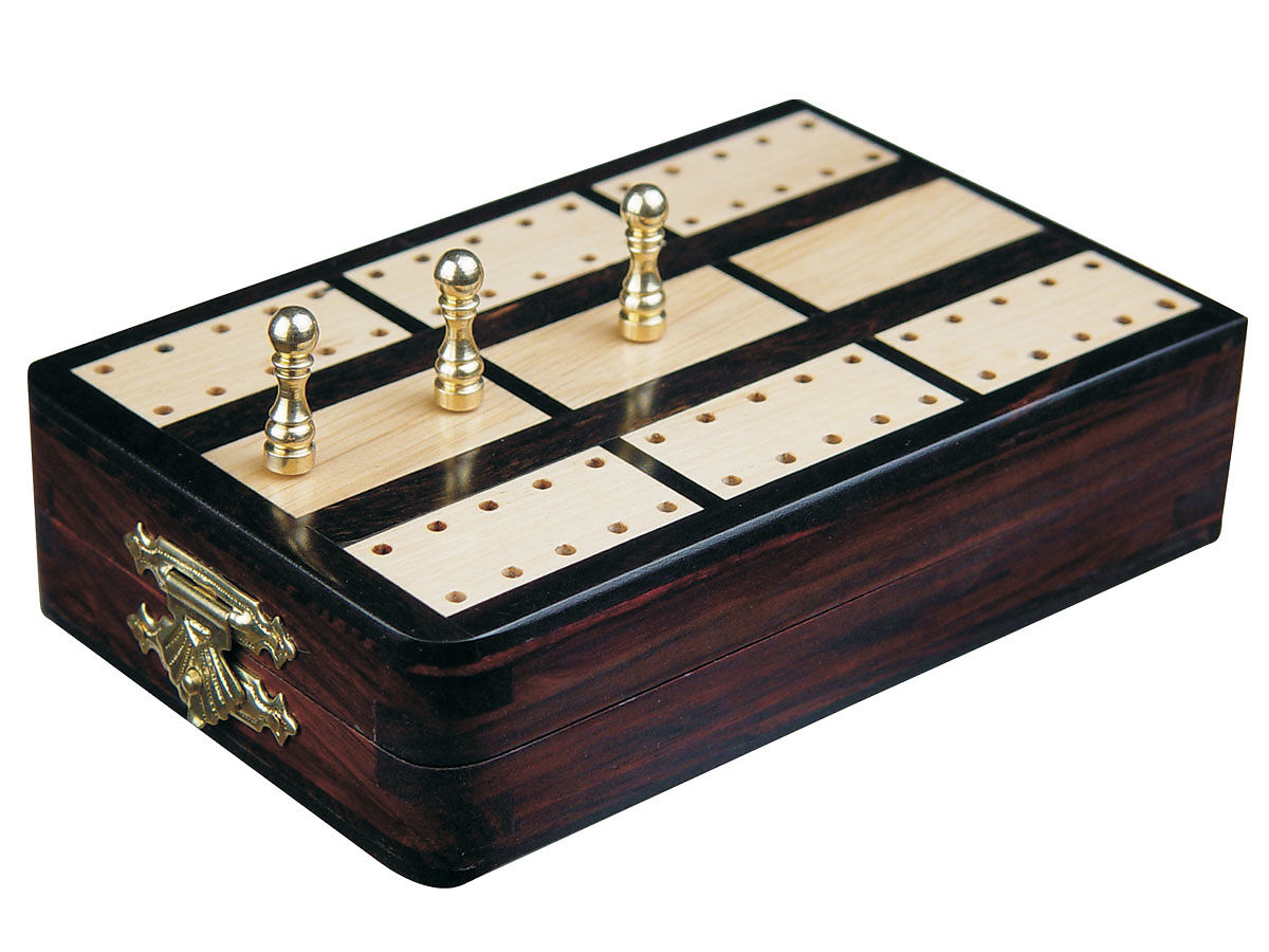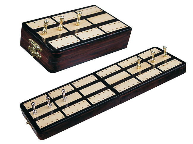 Cribbage Board Store presents exquisite 2 track (60 Points) Regular Design Imperial Cribbage Board & Box in Folding version. The handmade folding travel cribbage board/box is made of Ebony/Rosewood and through special inlay process, white maple tracks are inlaid on the board with great precision.